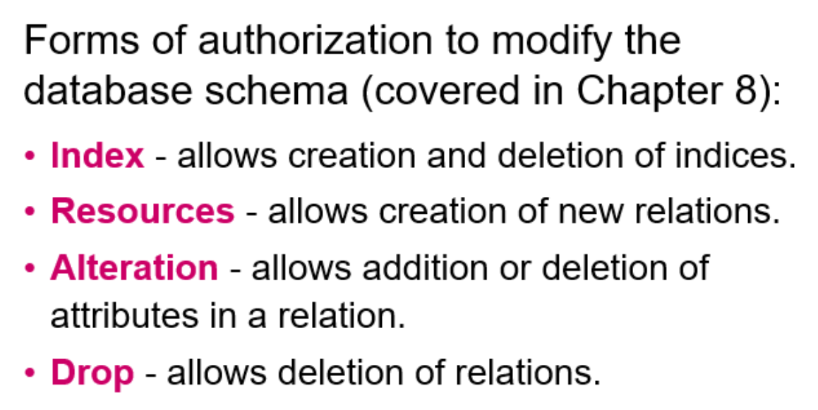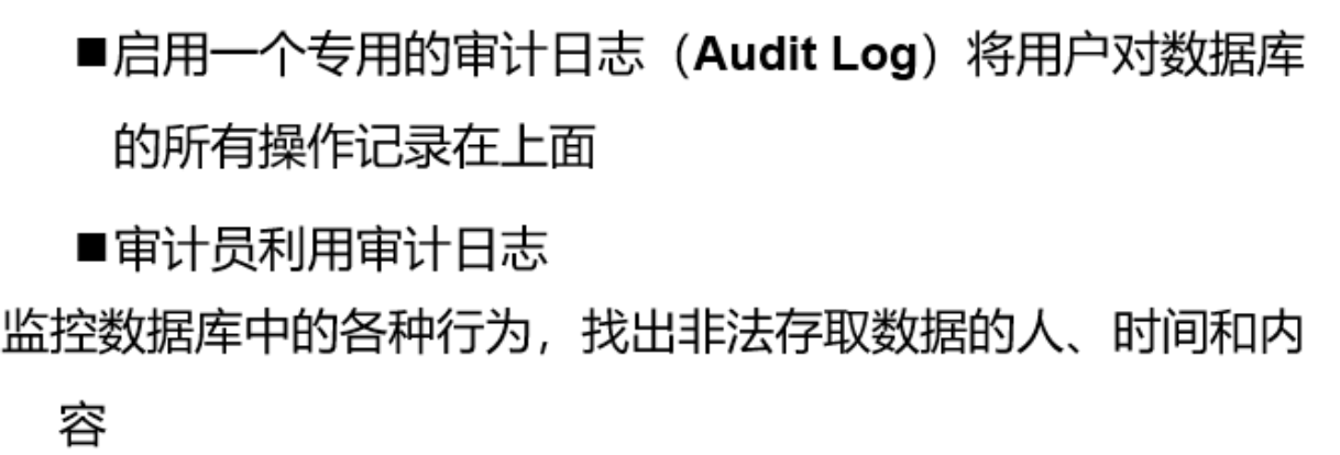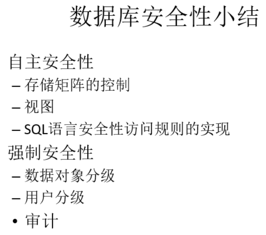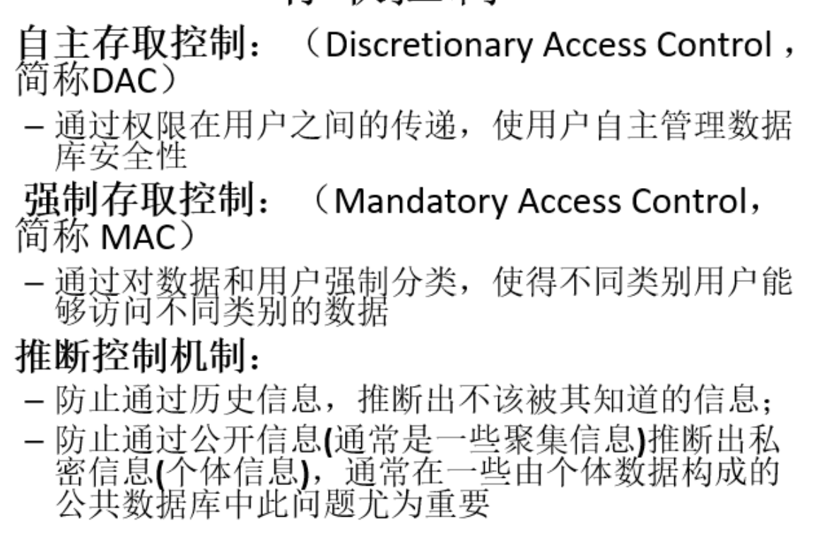 - 广义完整性: 语义完整性、并发控制、安全控制、DB 故障恢复等
