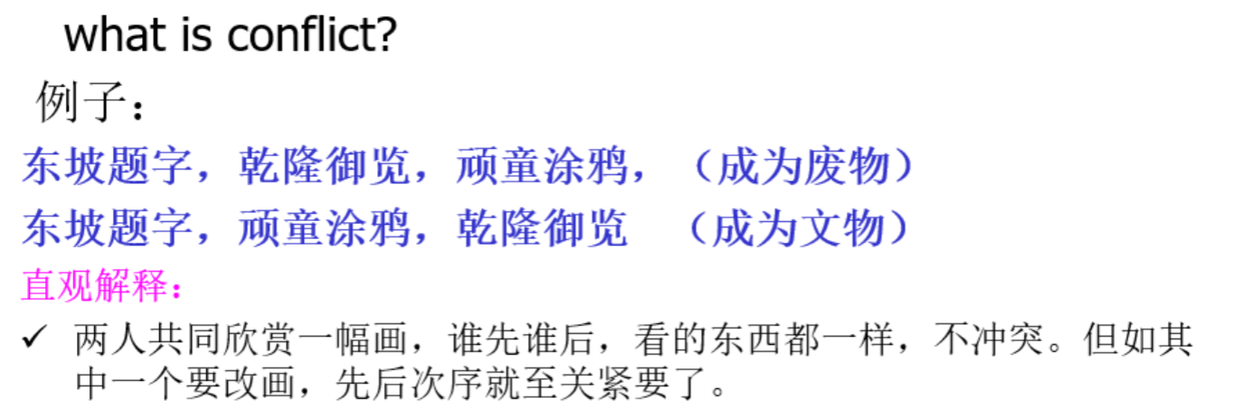 - 冲突可串行化(Conflict Serializability):在并发执行的多个事务之间,如果它们的执行顺序对于结果的影响等价于某个串行执行顺序,那么这些事务就是冲突可串行化的。