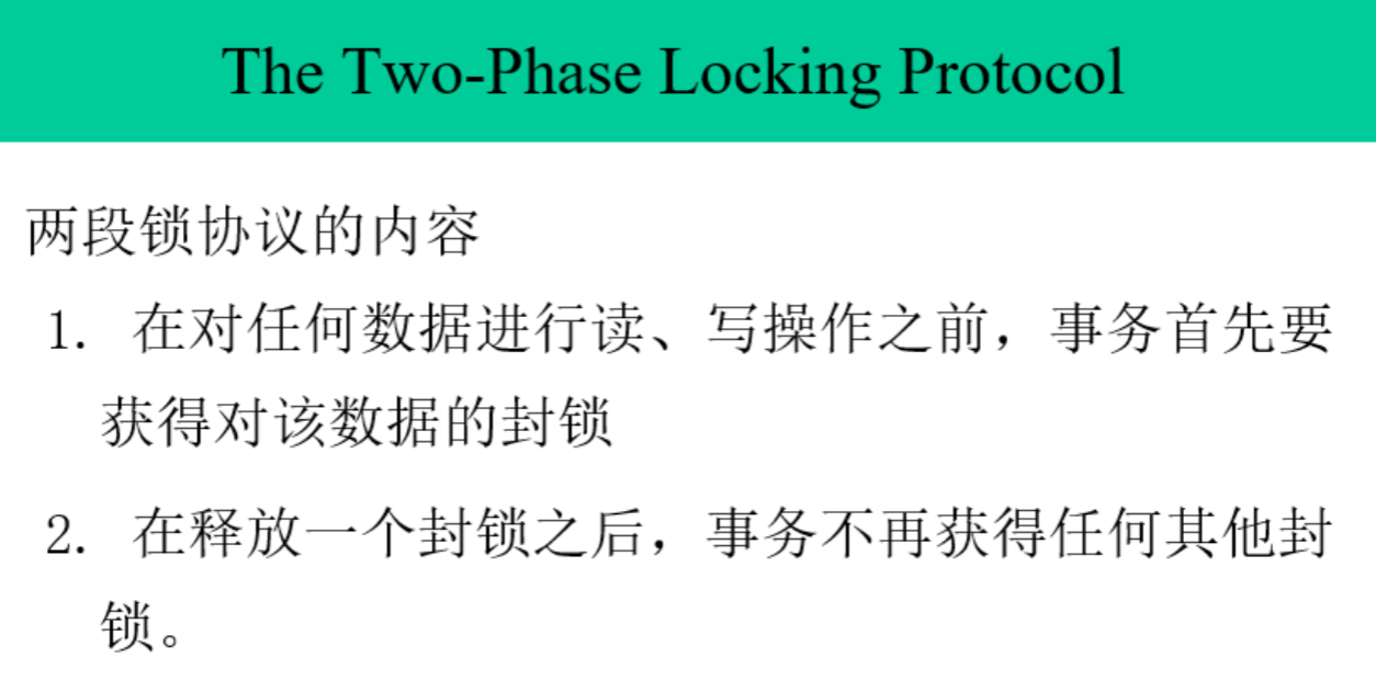 - 2PL: 可以保证冲突可串行性的 ;可能会产生死锁