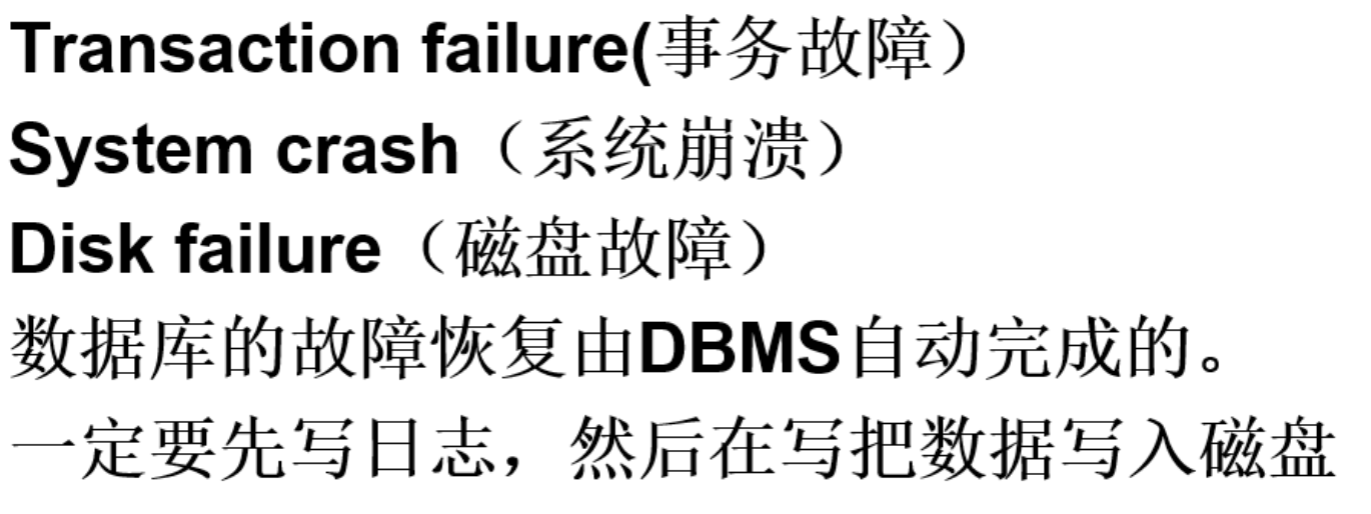 - 持久性 durability:DBMS 保证已提交事务的影响是持久的