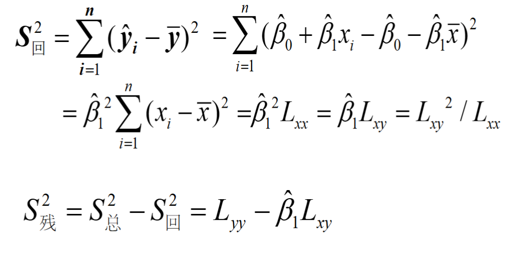 即 S总2 可以分解为两部分:回归平方和 S回2 与残差平方和 S残2 。