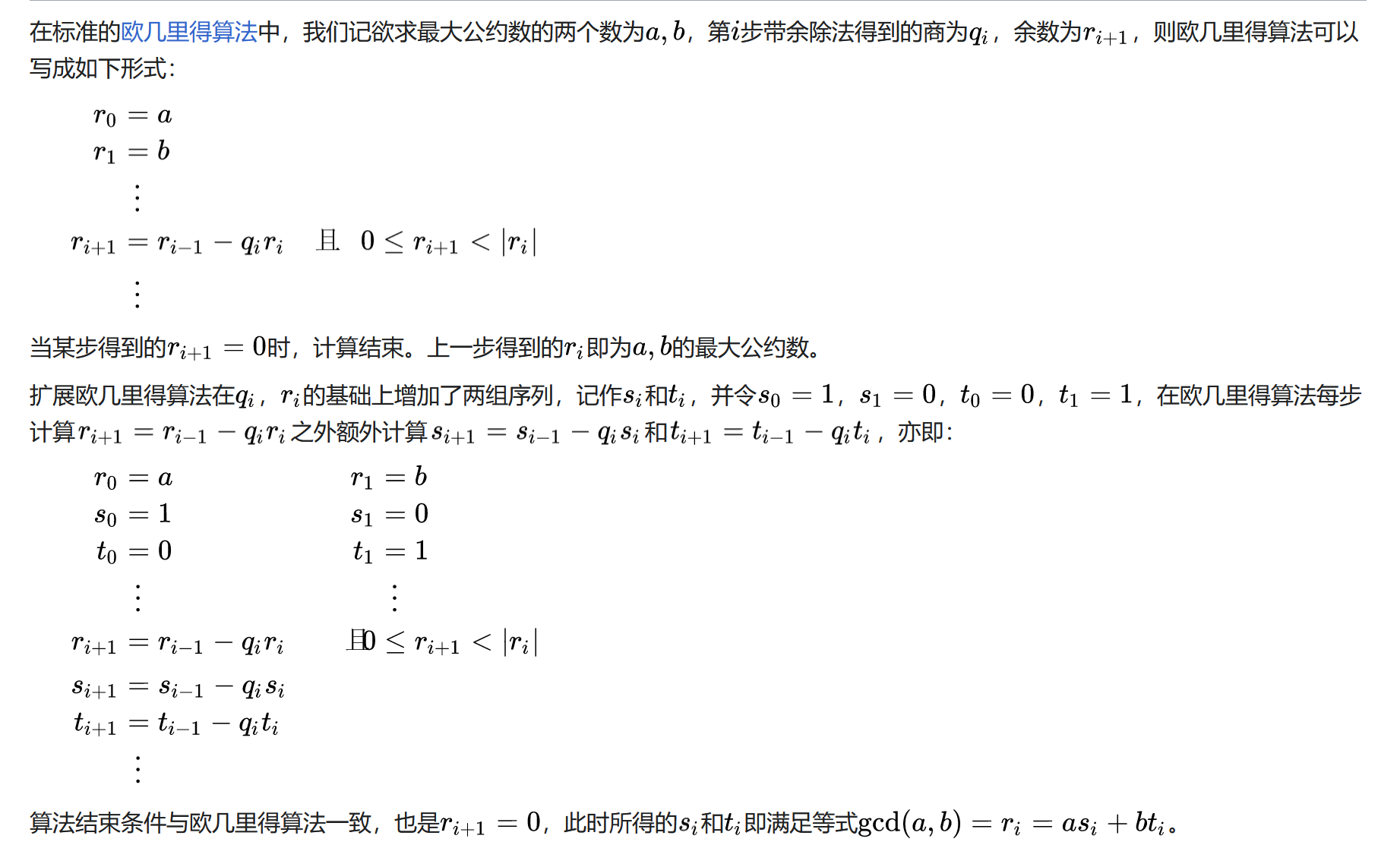 于是,找到模反元素d,实质上就是对下面这个二元一次方程求解。